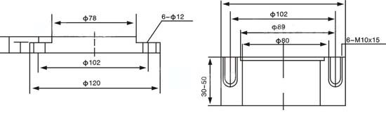 (2)凸緣B為被控制容器上與法蘭A相連的非標(biāo)準(zhǔn)件,用戶可根據(jù)圖示尺寸相應(yīng)配置,凸緣與被控容器焊接時(shí),應(yīng)注意凸緣上的6-M10的方向。