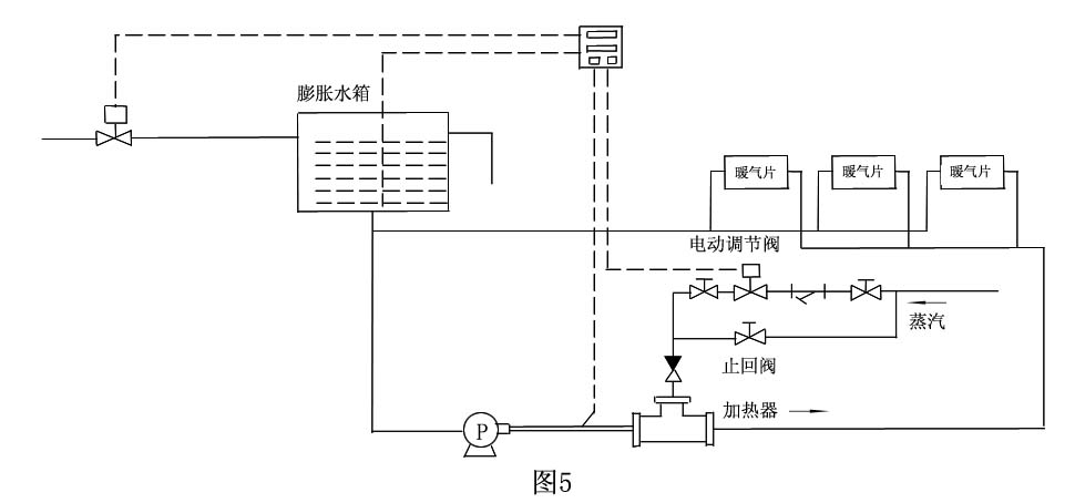 2、在蒸汽管道近加熱器處,需要安裝止回閥、過濾器。如以循環(huán)泵作為系統(tǒng)循環(huán)動(dòng)力時(shí),最好在蒸汽管道上加裝電磁閥,以便停電時(shí)能自動(dòng)切斷汽源。